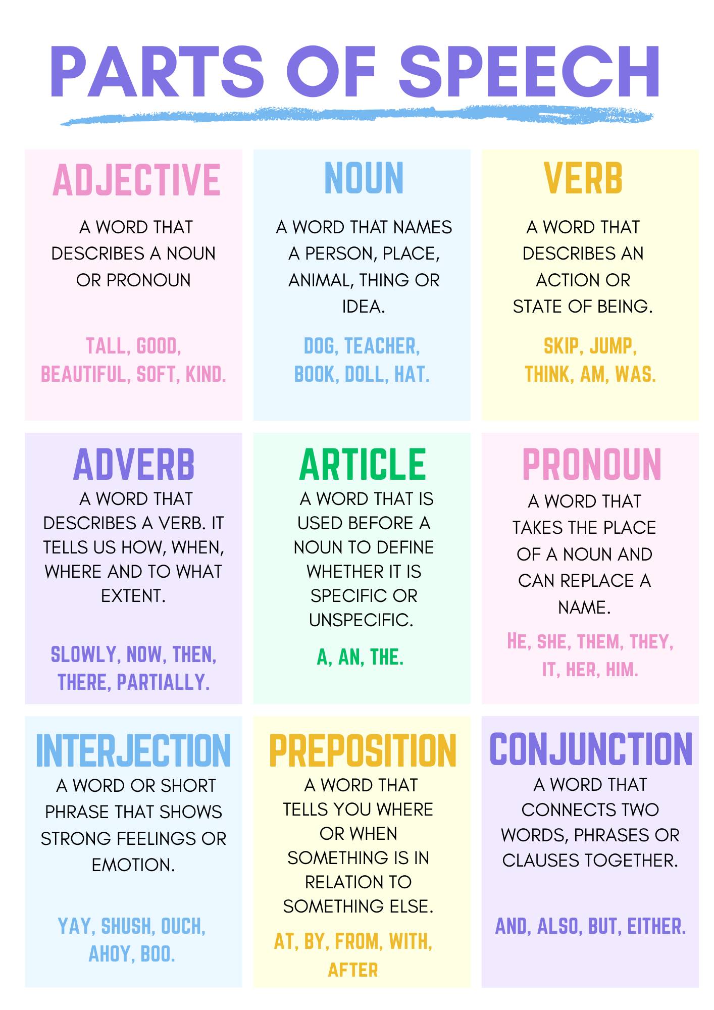 Get our parts of speech poster below! You can choose to download it totally free or if you feel able to, you can help support the blog and leave a small donation.